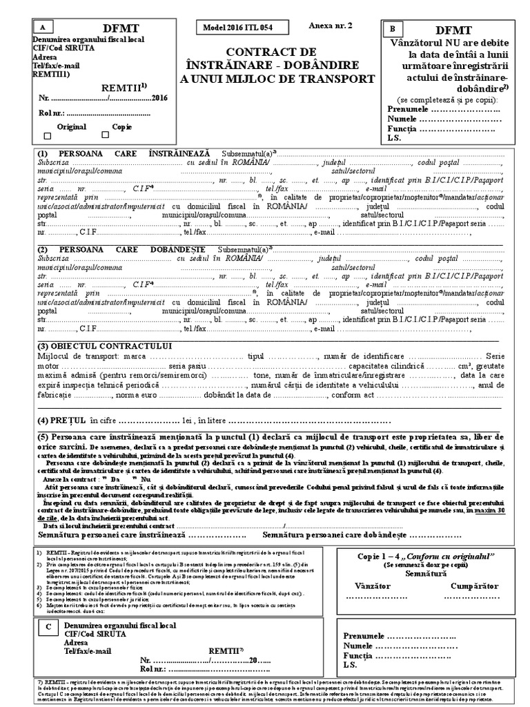 A unui mijloc de transport 1. 10 10 2017 indicarea beneficiarului in cazul platilor impozitelor si taxelor locale efectuate prin op. Formular contract instrainare dobandire a unui mijloc de transport pagina web oficială a municipiului baia mare conţine informaţii utile despre administraţia publică locală despre viaţa şi evenimentele din comunitatea băimăreană. De asemenea declară ca a predat persoanei care dobândeşte menţionat la punctul 2 vehiculul cheile certificatul de înmatriculare şi cartea de identitate a vehiculului primind de la acesta preţul prevăzut la punctul 4.