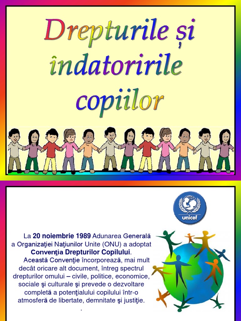 După ani de muncă suntem bucuroși să constatăm că mai mulți copii ajung să și celebreze primul și al cincilea an de la naștere. Unicef a fost alături de autorități familii și comunități pentru a face moldova o țară mai bună pentru copii. Conform eurobarometrului drepturile copilului din 2008 realizat la solicitarea comisiei europene cel mai mare grad de conştientizare din uniunea europeană privind existenţa unor drepturi ale copilului îl au tinerii români cu vârste cuprinse între 15 şi 18 ani. 314 din 13 iunie 2001 statele parti la prezenta conventie.
