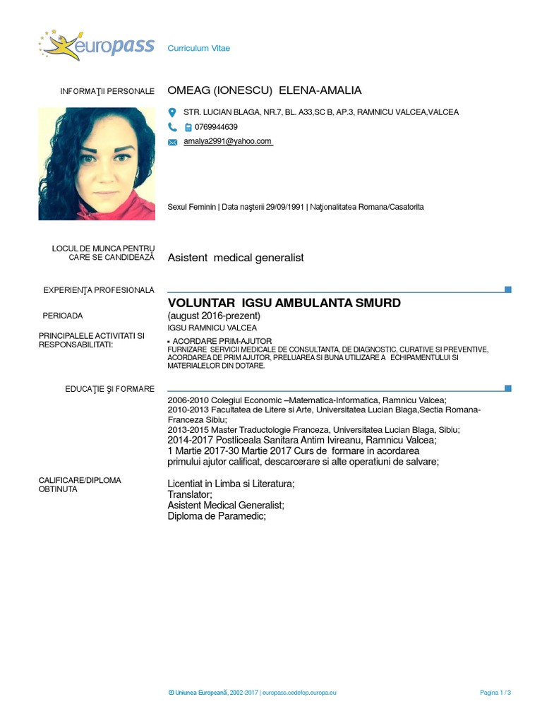 Cv Omeag Elena Amalia Ionescu