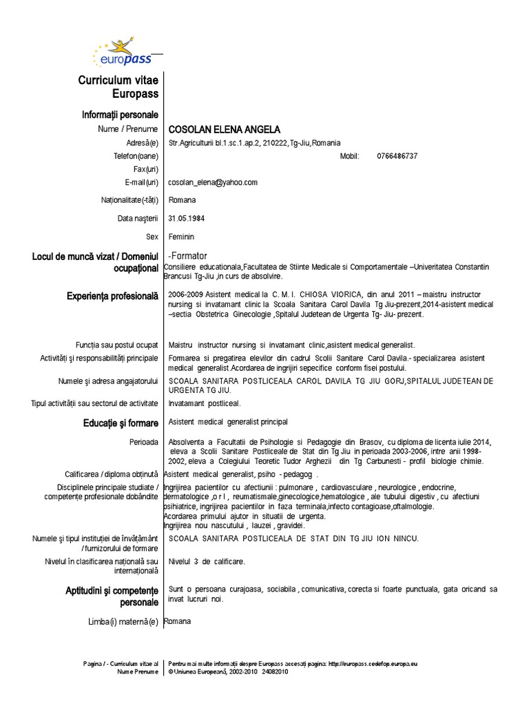 Cv Completat Asistent Medical Generalist