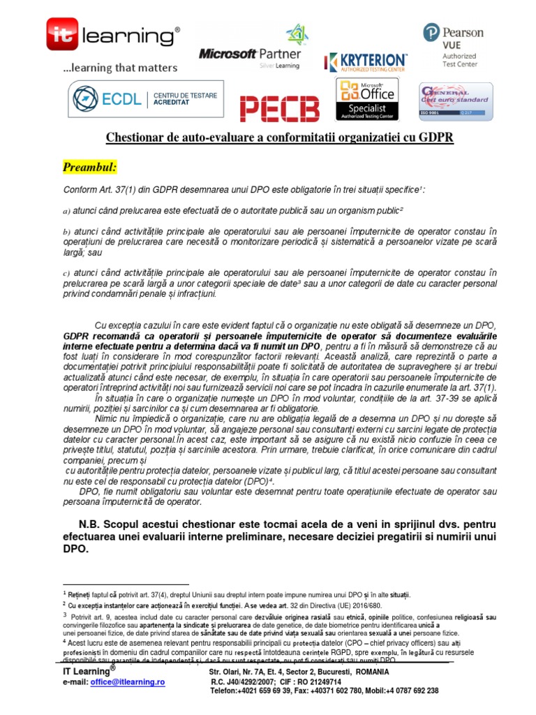 Chestionar Evaluare Conformitate Cu Gdpr Docx