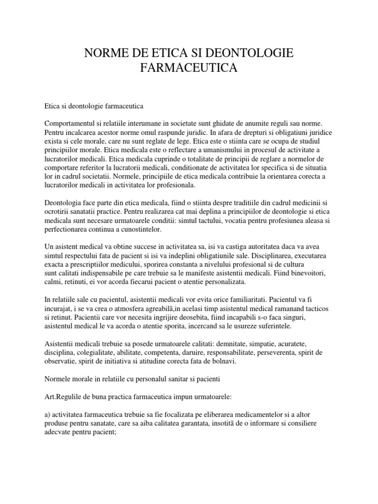 Deontologie si etica profesionala asistenti medicali referat. Arhiva contine 1 fisier doc de 3 pagini. Mai jos poate fi vizualizat un extras din document aprox. Iti recomandam sa te uiti bine pe extras si pe imaginile oferite iar daca este ceea ce ti trebuie pentru documentarea ta il poti descarca. Fratele cel mare te iubeste acest download este gratuit.
