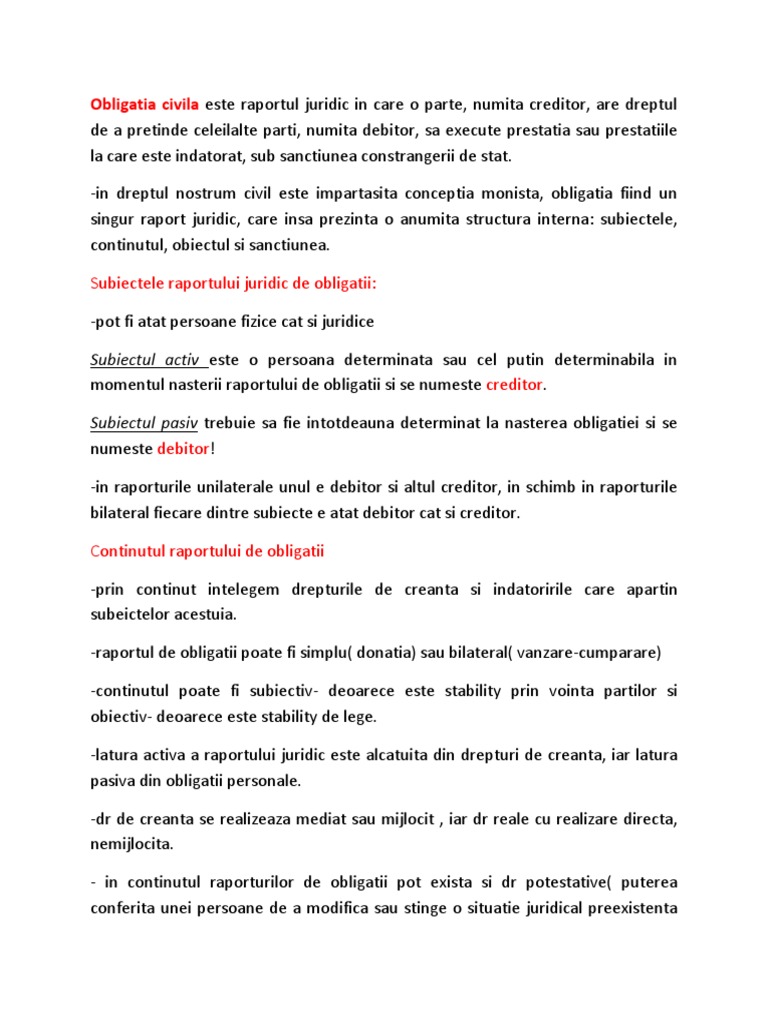 Liviu Pop Dr Civil Obligatii Rezumat