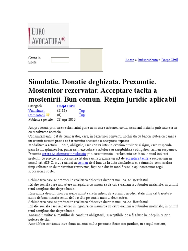 Drept Civil Simulatie Donatie Deghizata Prezumtie