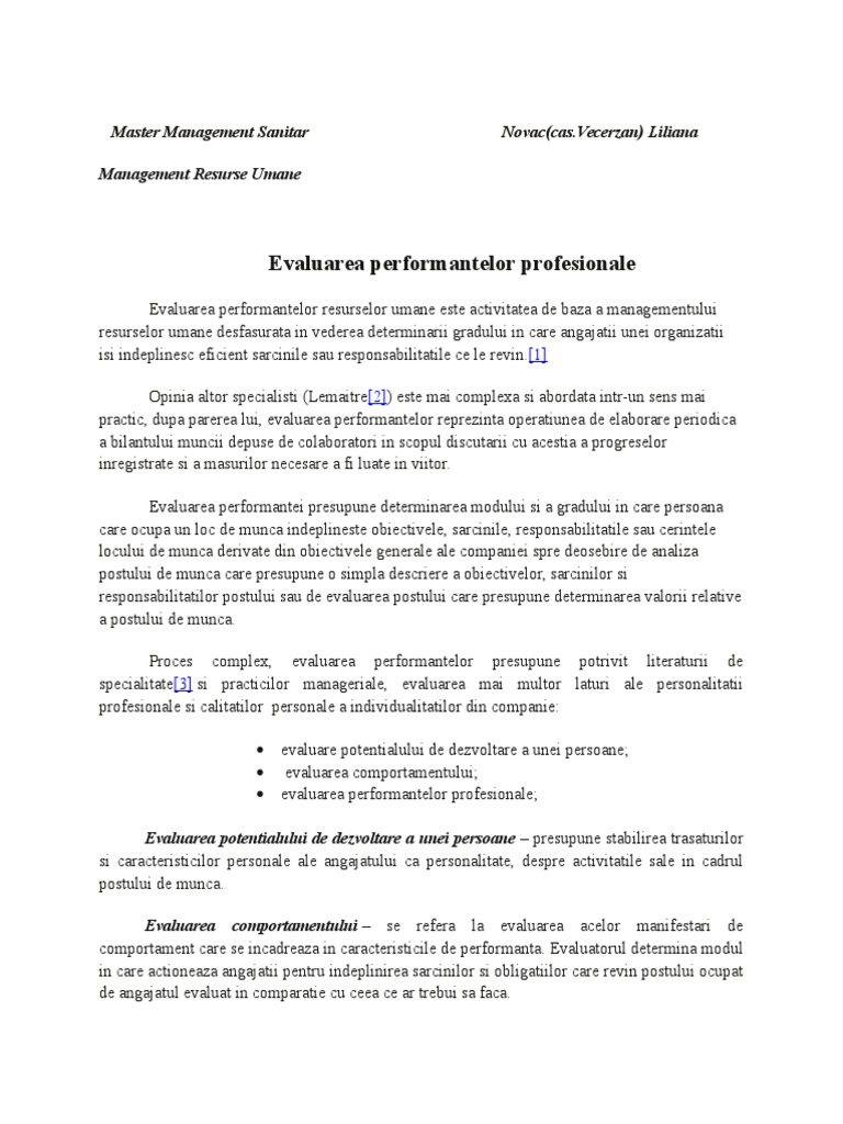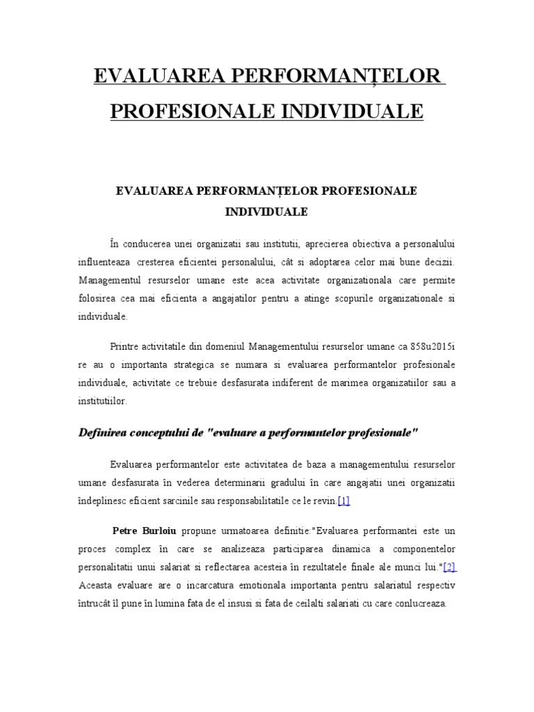 Doc Evaluarea Performantelor Angajatilor Tofan B Academia Edu
