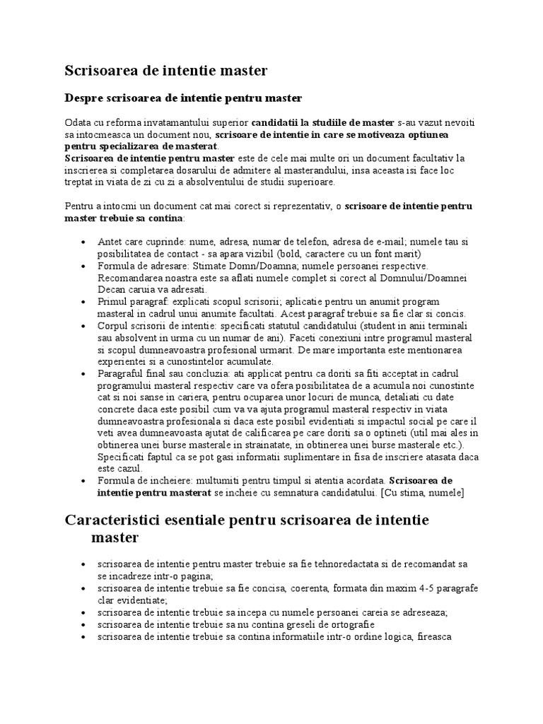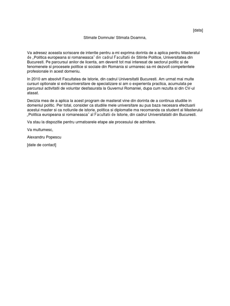 Model Scrisoare De Intentie Pentru Masterat Strainatate