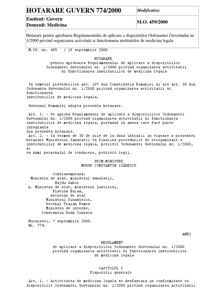 Este chemată a se pronunţa şi comisia de expertiză medico legală psihiatrică cu de care suferă cazul persoanelor bolnave psihic expertiza medico legală psihiatrică este o activitate interdisciplinară care are ca scop discernământul persoanei cu referire specială la starea psihica în momentul momentul de. N expertiza medico legală a persoanelor pentru evaluarea capacității de conducere auto. Să determine motivele de examinare medico legală a cadavrelor şi metodologia examinării locului faptei. Secţiunea 6 noua expertiza medico legală articolul 49 1 o noua expertiza medico legală se efectuează de către o comisie de experți indiferent dacă prima expertiza a fost efectuată de un singur medic legist sau de mai mulți medici legisti ori de o comisie.