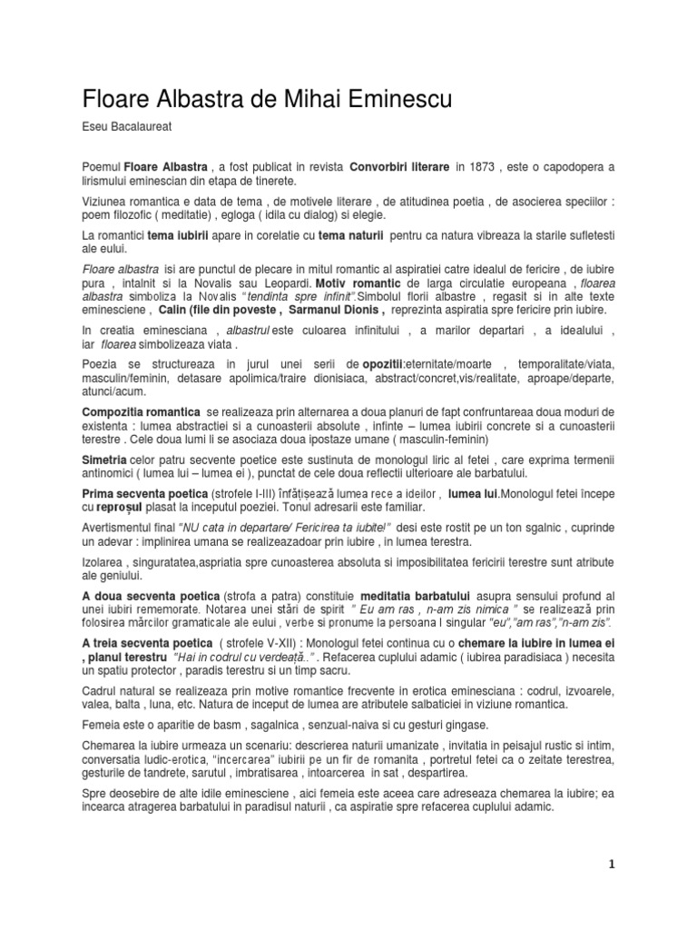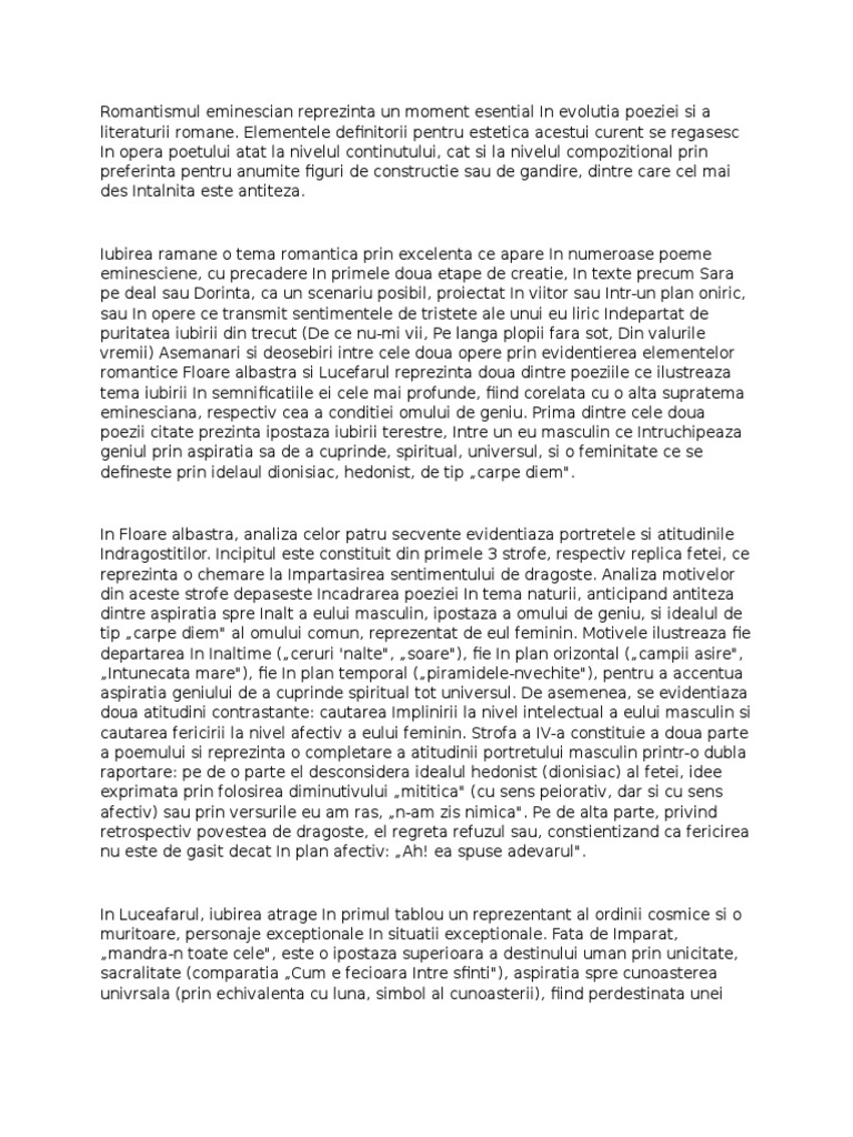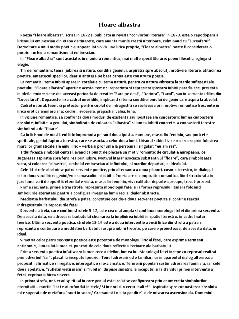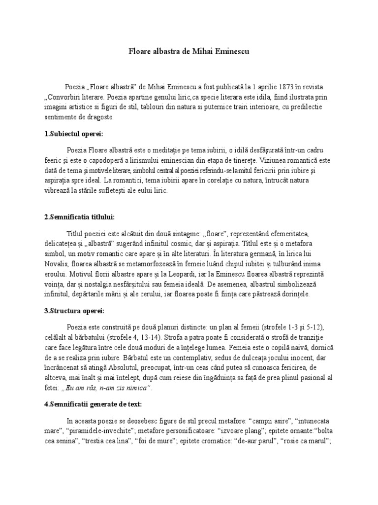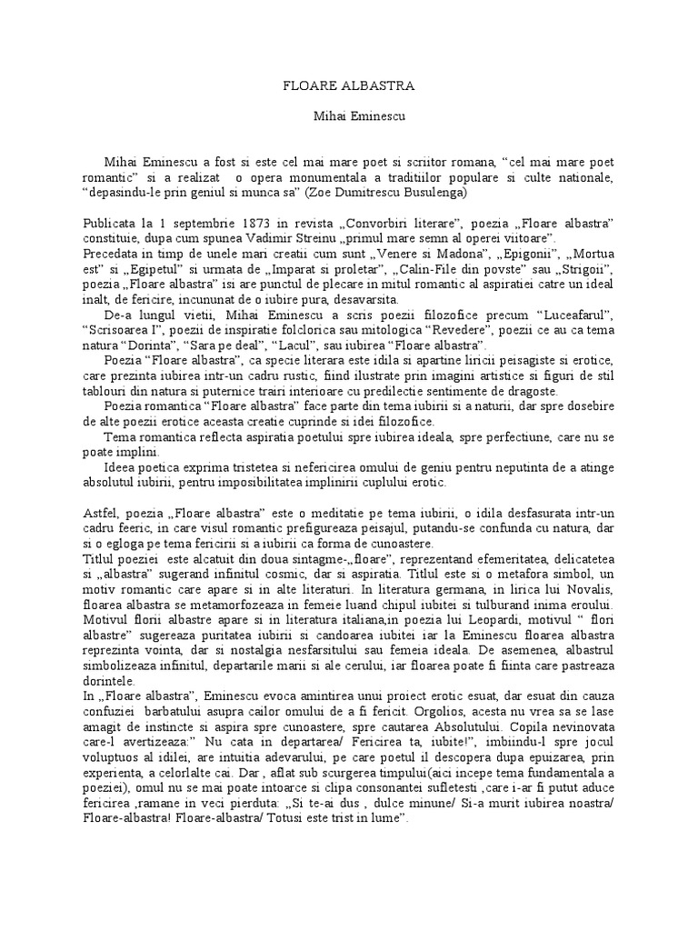 Doc Poezia Romantică Floare Albastră De Mihai Eminescu Andreea Valentina Alexandru Academia Edu