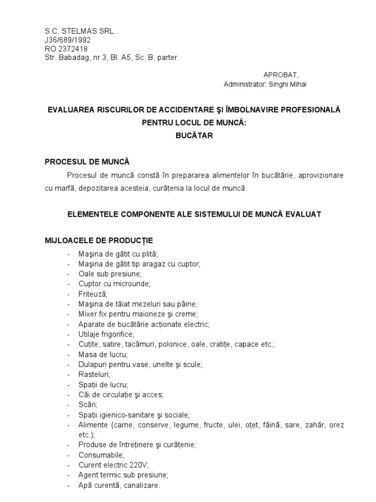 Evaluare Riscuri Bucatar