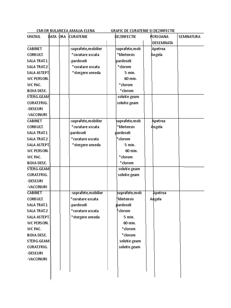 Grafic Zilnic De Efectuarea Operatiunii De Curatare Si Dezinfectie