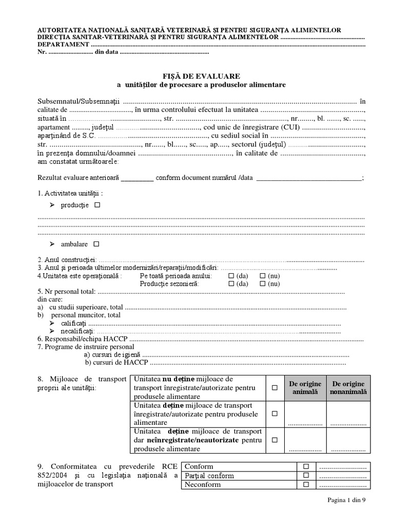 Fisa De Evaluare A Unitatilor De Procesare A Produselor Alimentare