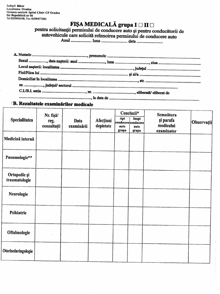 Fisa Medicala Permis De Conducere