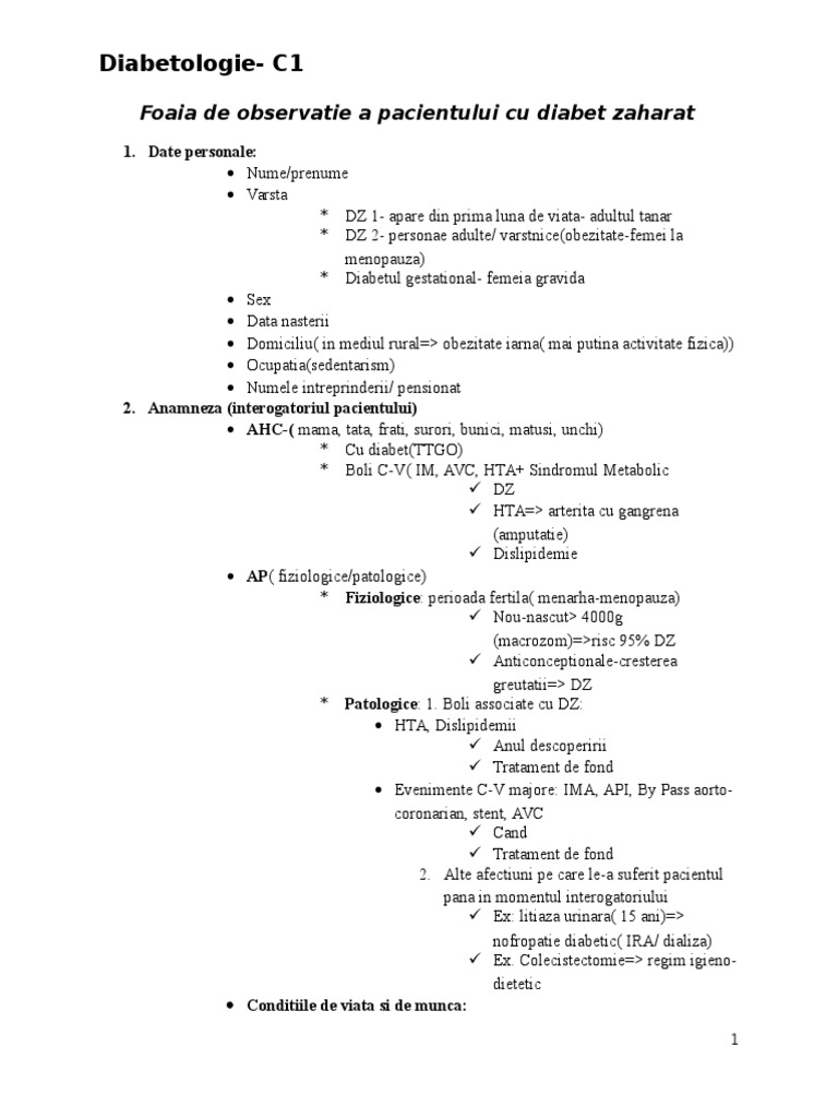 Foaia De Observatie A Pacientului Cu Diabet Zaharat
