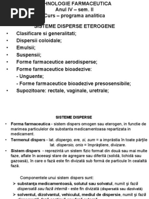 55646669 Forme Farmaceutice Ca Sisteme Disperse Omogene Pdf T E H N O L O G I E F A R M A C E U T I C P E N T R U A S I S T E N I I D E F A R M A C I Course Hero