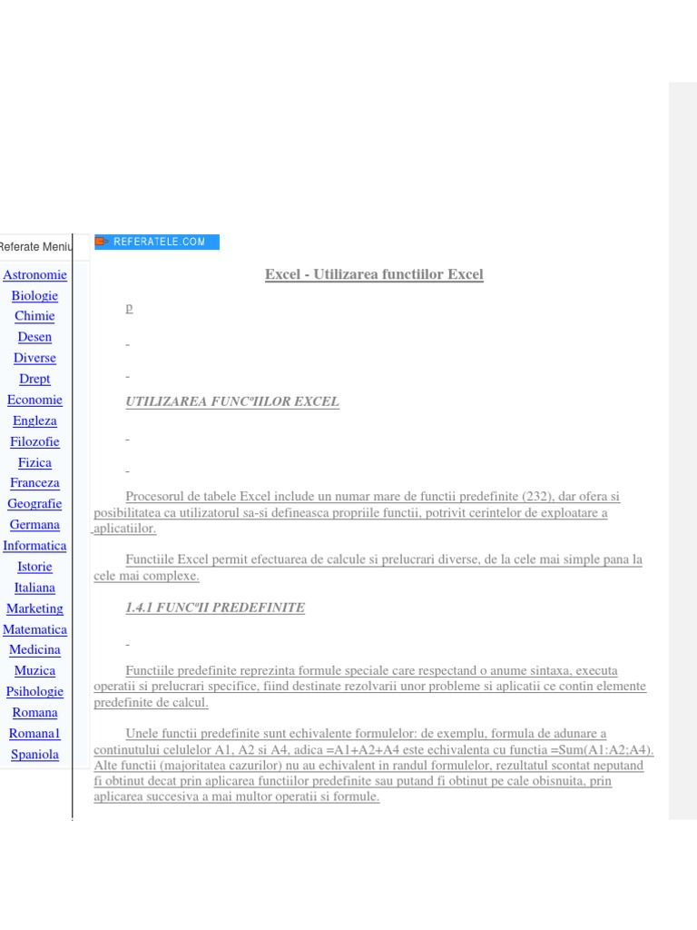 Excel4 Utilizarea Functiilor Excel Docsity