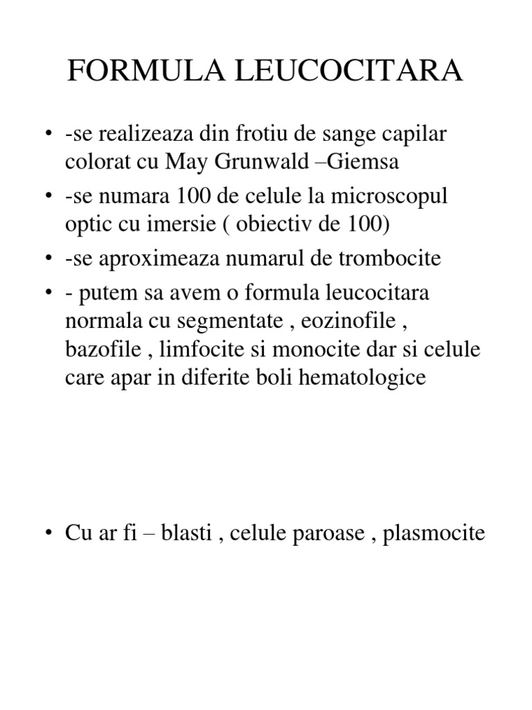 Am 33 ani masculin. Cristina tuchilus sef de lucrari umf iasi medic primar medicina de laborator la laboratorul de hematologie policlinica nr. Actualmente este de preferat raportarea fiecarui tip de leucocite in valori absolute. Formula leucocitară este efectuată automat de către analizor.