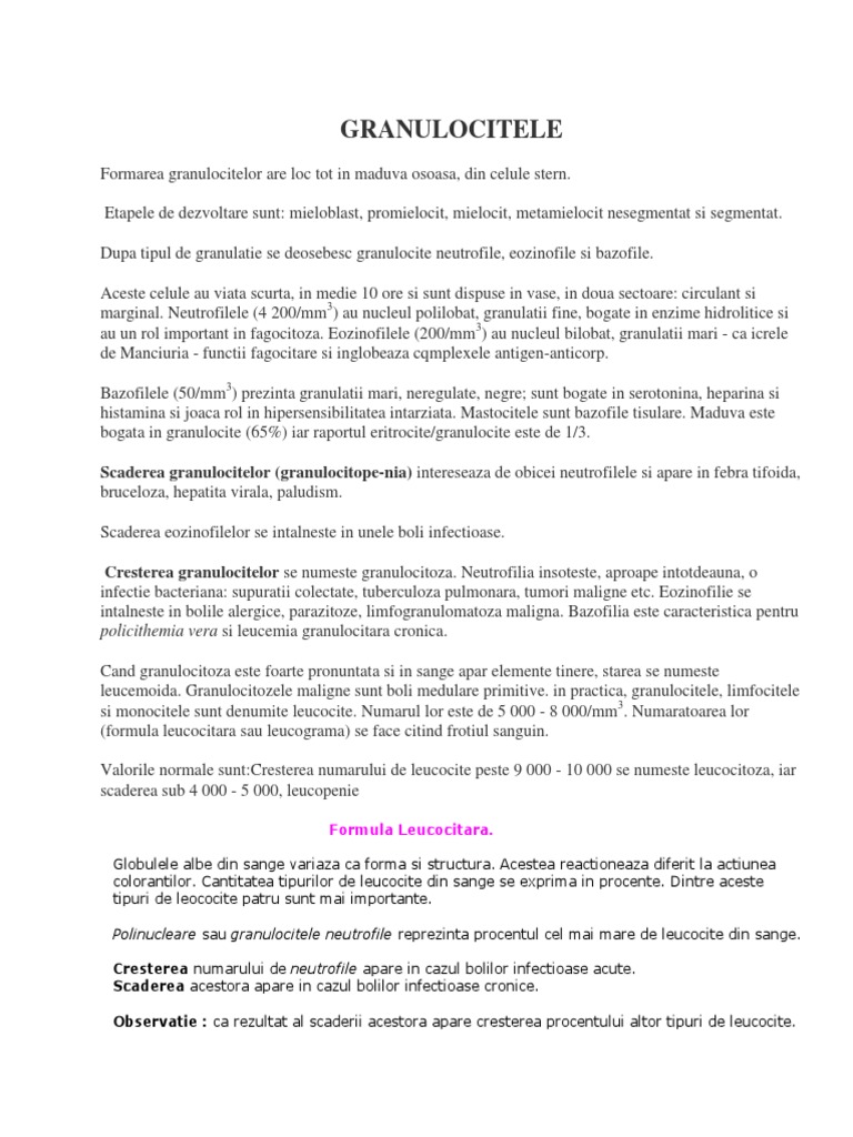 Valori de referin ţă valori. Am facut analizele de sange iar la formula leucocitara sunt unele valori anormale. Formula leucocitara formula leucocitară reprezintă o analiză de sânge ce constă în aprecierea numărului celor cinci tipuri de leucocite exprimate procentual și în număr absolut fiecare dintre acestea îndeplinind o funcție specifică. Scazut sub cinci minute indica o coagulare anormal de rapida a sangelui putand duce la coagularea sangelui chiar in vasele sanguine asa cum se intampla in unele infectii microbiene.