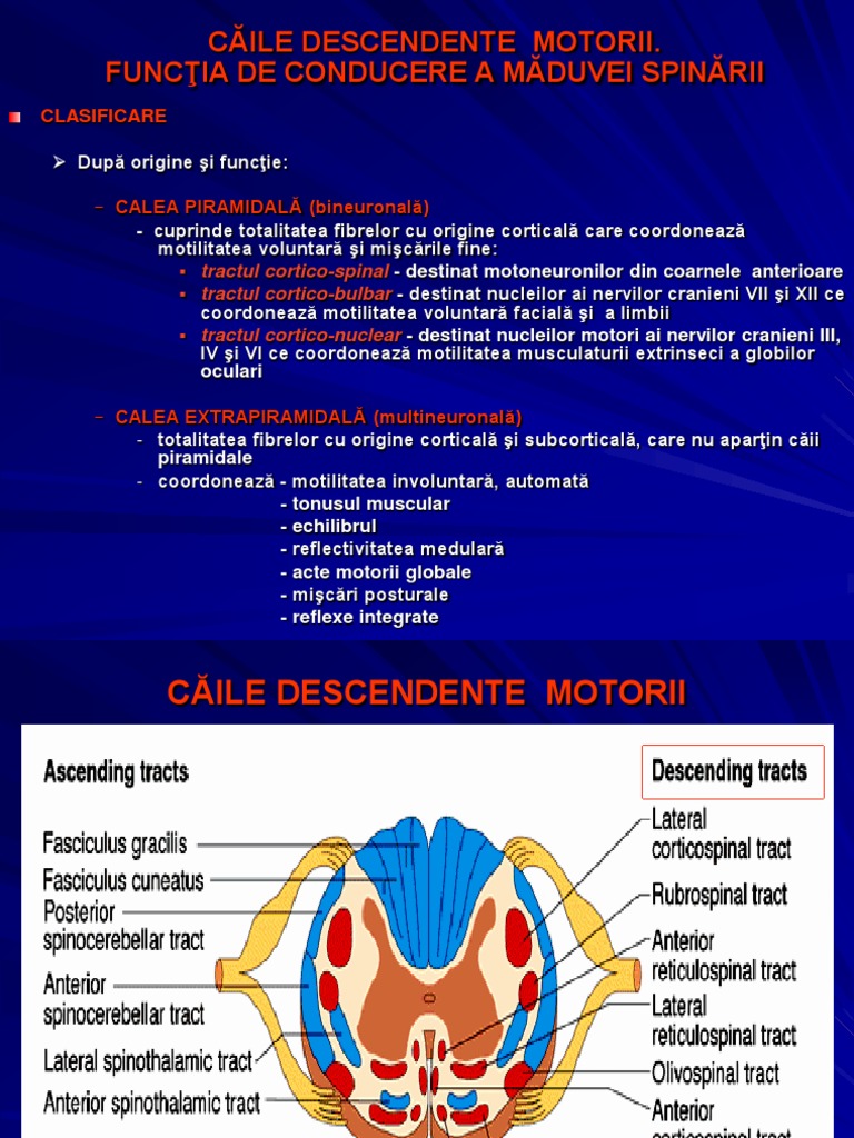 Căile Descendente Motorii Funcţia De Conducere A Măduvei Spinării Clasificare