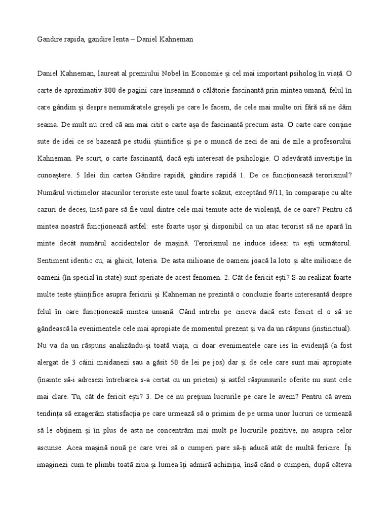 Daniel kahneman ne poarta intr o calatorie inovatoare prin ascunzisurile mintii si ne explica cele doua sisteme care conduc modul nostru de a gandi sistemul 1 este rapid intuitiv si emotional. This website is not related to us. Search covid 19 stats updates disclaimer. Download view gandire rapida gandire lenta daniel kahneman pdf as pdf for free.