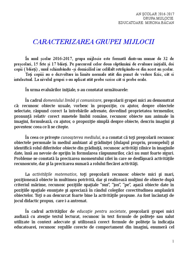 Caracterizarea Grupei Mijlocii