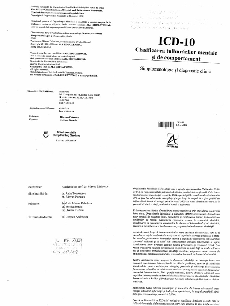 Icd 10 clasificarea tulburarilor mentale si de comportament editura trei.