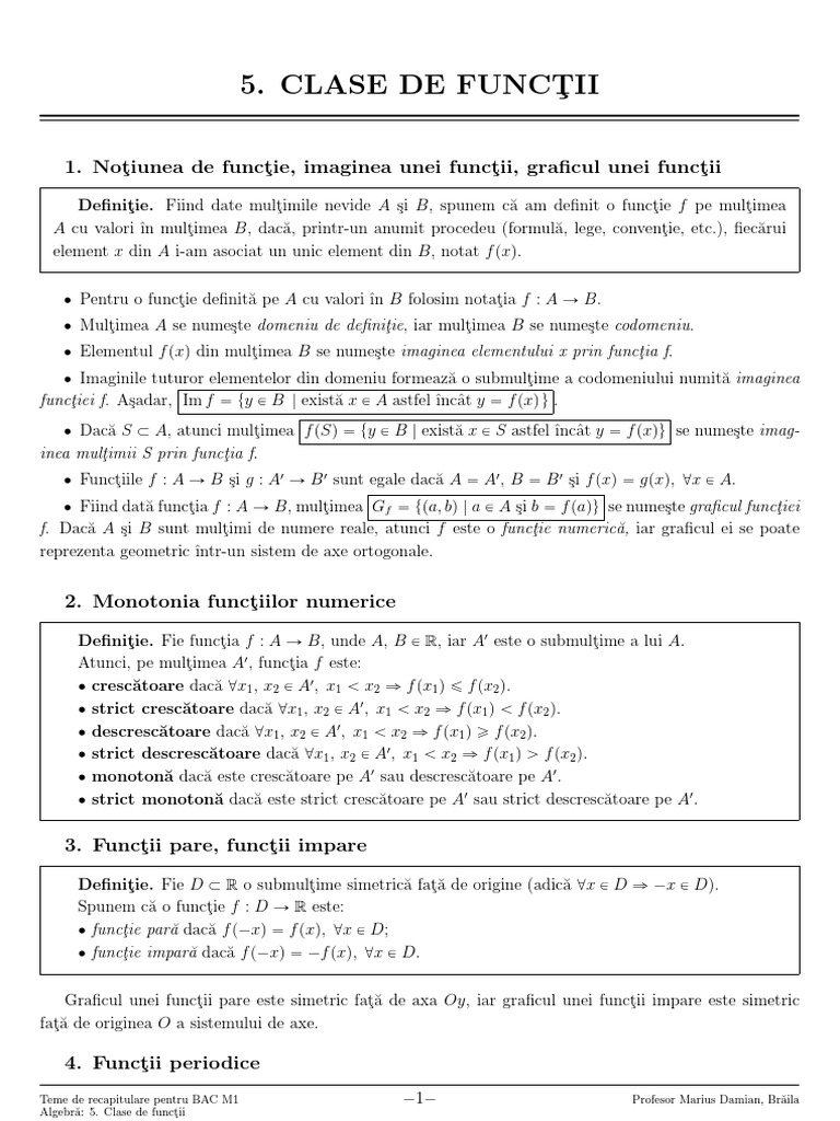 5 Clase De Funct Ii 1 Not Iunea De Funct Ie Imaginea Unei Funct Ii Graficul Unei Funct Ii