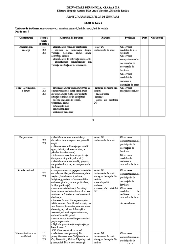 Planificare Proiectarea Unitatilor Calendar Scolar Dezvoltare Personala 2 Cdpress