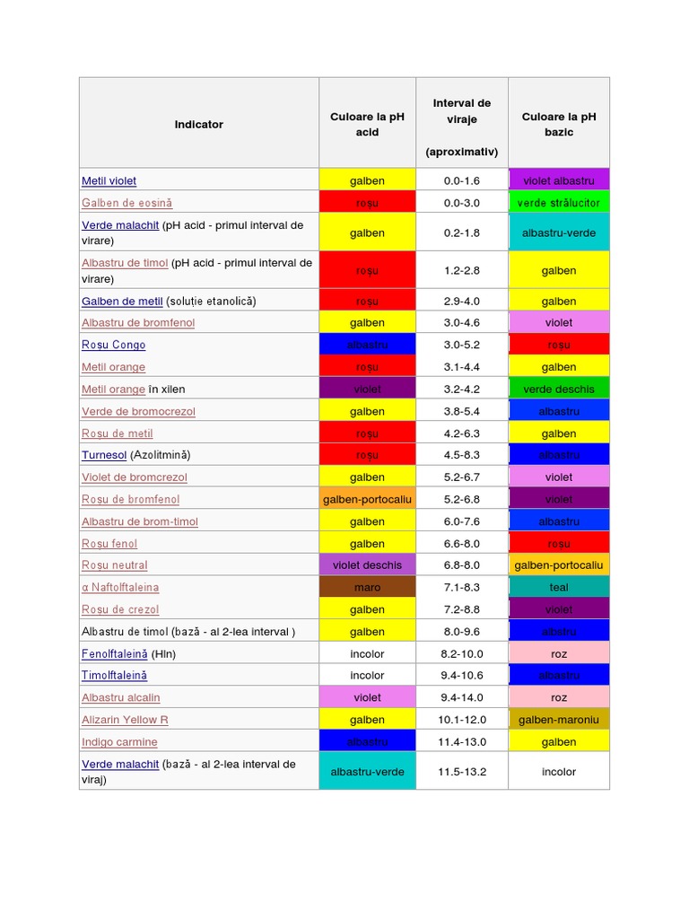 Chimie Fizică și Ecologie Indicatori Acido Bazici