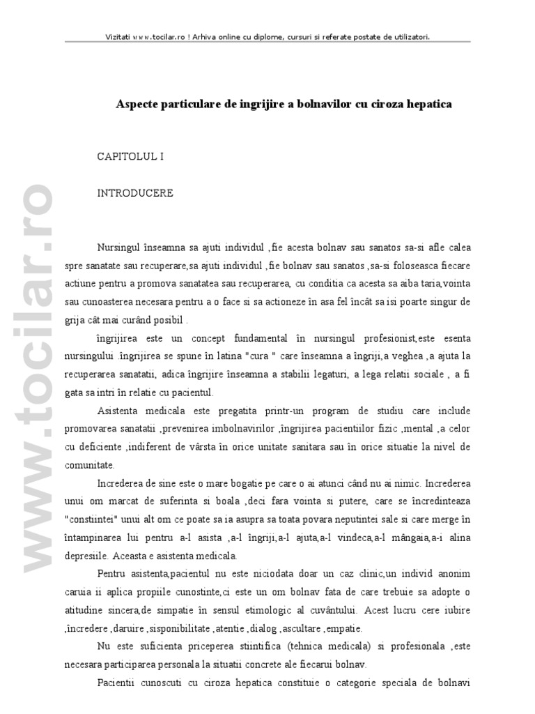 Imagini din aceasta licenta cum descarc. Ingrijirea pacientului cu ciroza hepatica. Aceasta licenta trateaza ingrijirea bolnavului cu ciroza hepatica. Arhiva contine 5 fisiere doc de 141 de pagini in total.