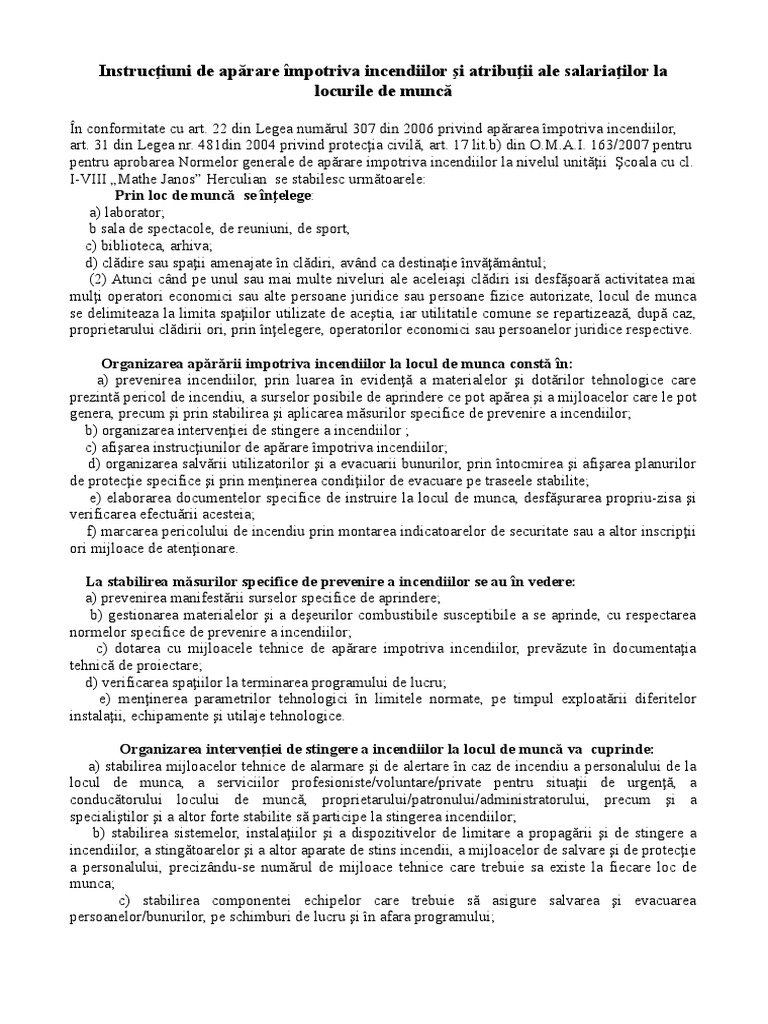 Catre S C S R L Aprobat Administrator Instructiuni De Aparare Impotriva Incendiilor Masuri Pentru Sezonul Cald Tip Instructaj Periodic Postul Sofer Autocamion Masina Mare Tonaj