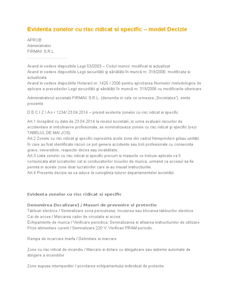 Evidenta Zonelor Cu Risc Ridicat Si Specific