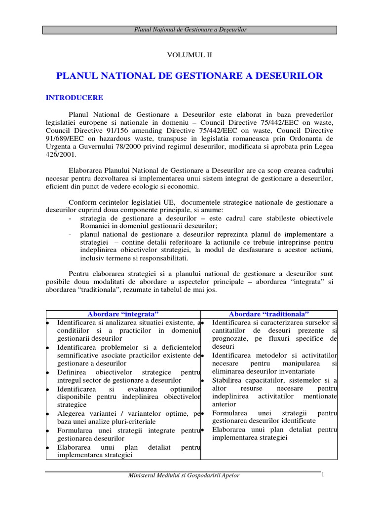 Legea Nr 426 2001 Pentru Aprobarea Ordonanței De Urgență A Guvernului Nr 78 2000 Privind Regimul Deșeurilor Lege5 Ro