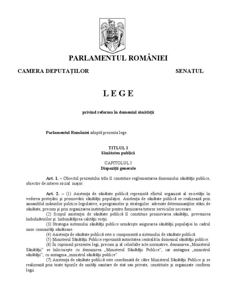 Lege Nr 95 Din 14 Aprilie 2006 Privind Reforma In Domeniul Sănătăţii